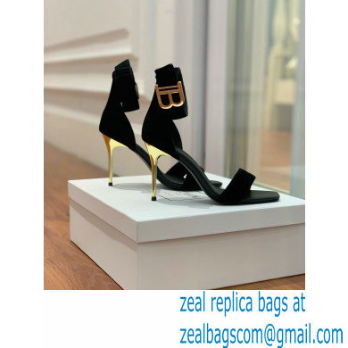 Balmain Heel 9.5cm Rudie Sandals Suede Black 2022