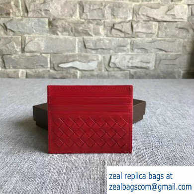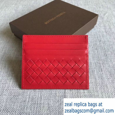 Bottega Veneta Card Case In Intrecciato Weave Red
