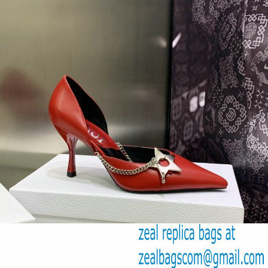 Dior Heel 8.5cm Chain and Star Pointed Toe Pumps Red 2023
