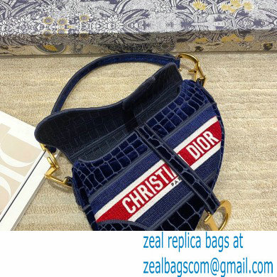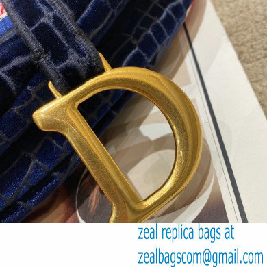 Dior Saddle Bag in Crocodile-Effect Embroidered Velvet Blue 2021