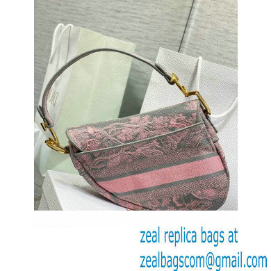 Dior Saddle Bag in Gray and Pink Toile de Jouy Reverse Embroidery