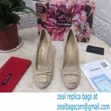 Dolce & Gabbana Block Heel 10.5cm Leather Sicily Pumps Beige 2021
