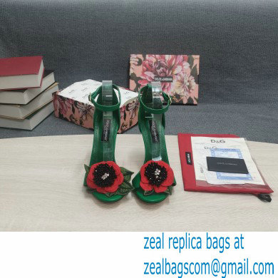 Dolce & Gabbana DG Logo Heel 10.5cm Black Red Roses Sandals Green 2022