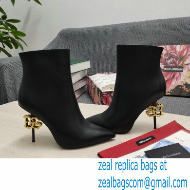 Dolce & Gabbana Thin Heel 10.5cm Leather Ankle Boots Black with Baroque DG Heel 2021