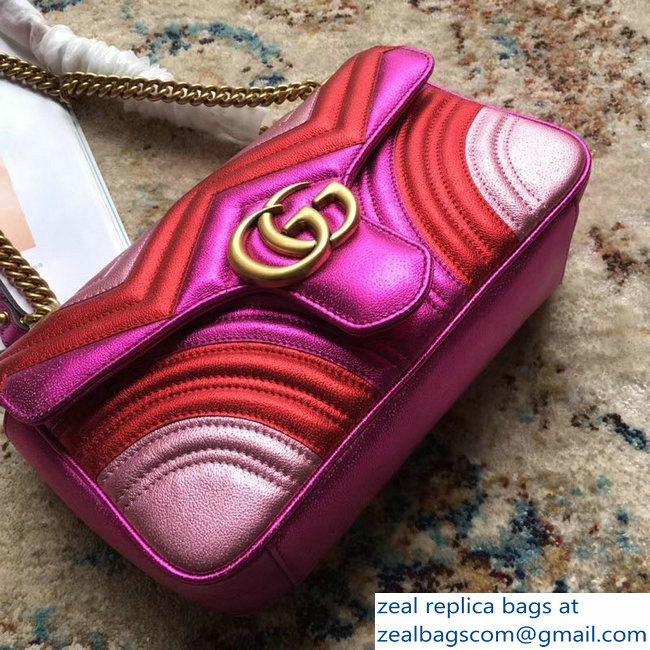 Gucci GG Marmont Matelasse Chevron Shoulder Small Bag 443497 Metallic Fuchsia 2019