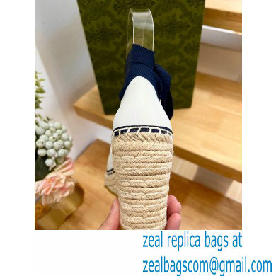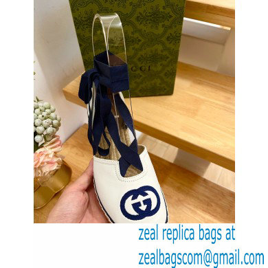 Gucci Heel 9.5cm Leather espadrilles with ribbon tie 725836 White/Dark Blue 2023