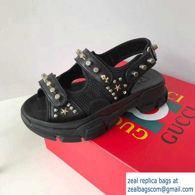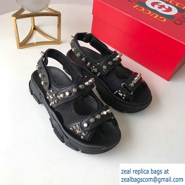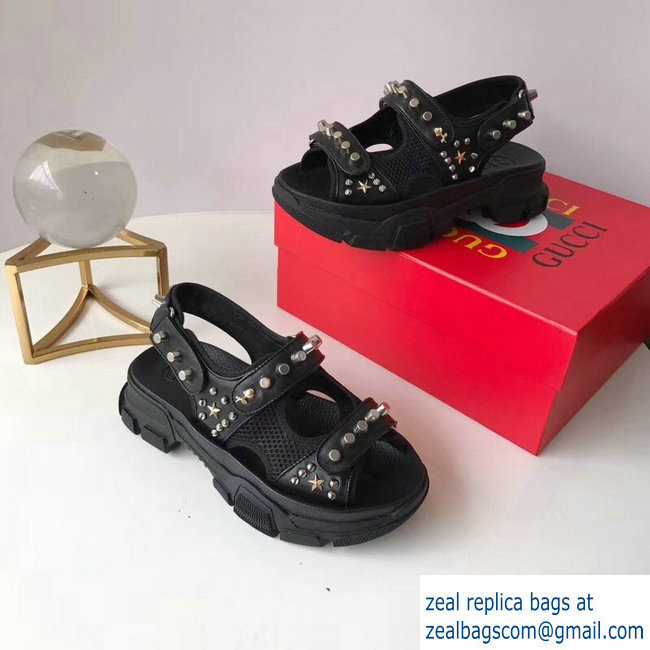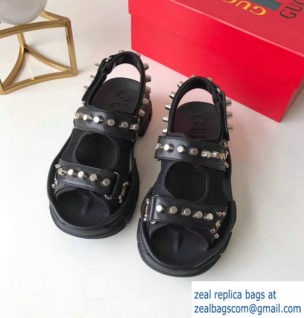 Gucci Leather And Mesh Sandals With Studs 546073 Black 2019