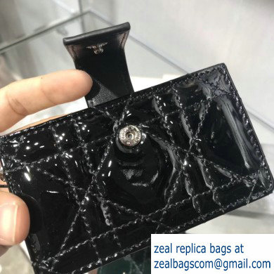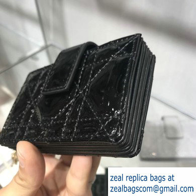Lady Dior Gusseted Card Holder with 5 pockets in Cannage Patent Black