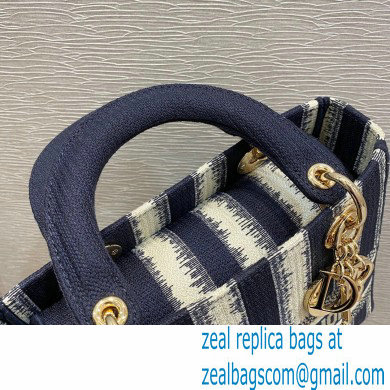 Lady Dior Medium D-Lite Bag in D-Stripes Embroidery Dark Blue 2021