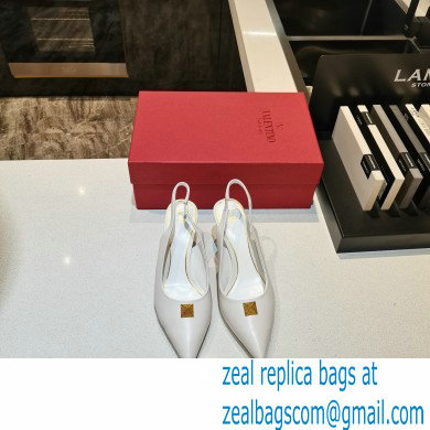 Valentino Heel 6.5cm Calfskin Roman Maxi Stud Slingback Pumps White 2021