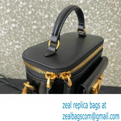 Valentino Mini Loco Handbag In Calfskin Leather Black With Enamel Tone-On-Tone Vlogo Signature 2024