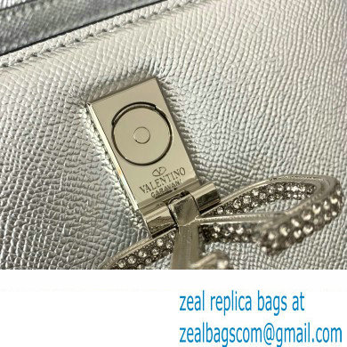Valentino Mini VSLING Handbag in metallic Silver grainy calfskin with VLogo Signature crystals 2024