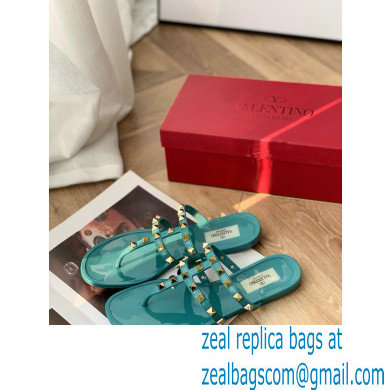 Valentino Rockstud Flat Rubber Thong Slide Sandals Blue