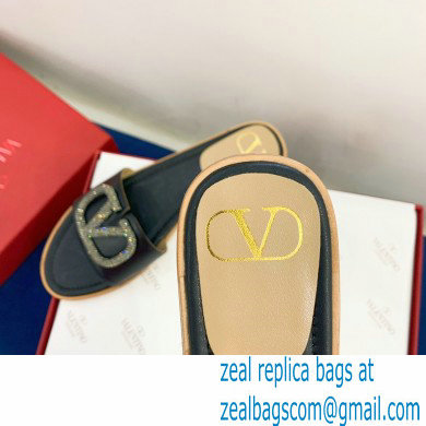 Valentino VLogo Signature Slide Sandals Black/Crystals 2021